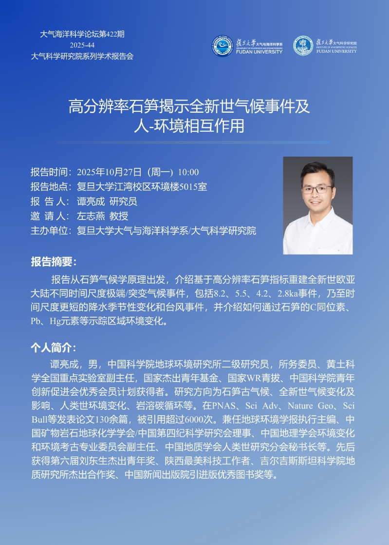 2025/10/27 -谭亮成- 高分辨率石笋揭示全新世气候事件及人-环境相互作用