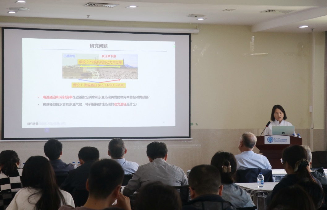 在与谈报告中,我系周文教授以2022年巴基斯坦洪水与东亚热浪为切入点,指出巴基斯坦地区作为“最佳激发点”,其盛夏的对流可以扰动对流层上层西风带,导致东亚地区出现持续的热浪天气。这一动力途径主要受大气内部变率调控,是亚洲夏季风系统的动力本征模态。