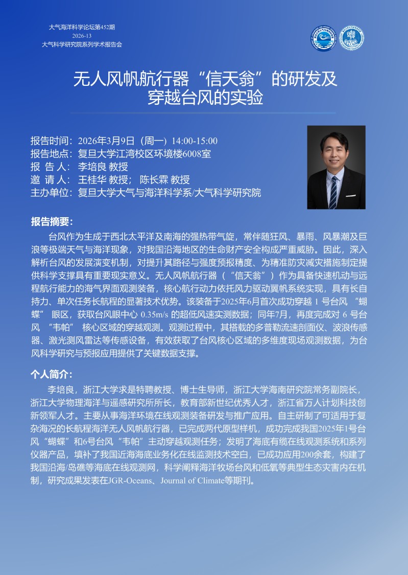 2026/03/09 -李培良- 无人风帆航行器“信天翁”的研发及穿越台风的实验